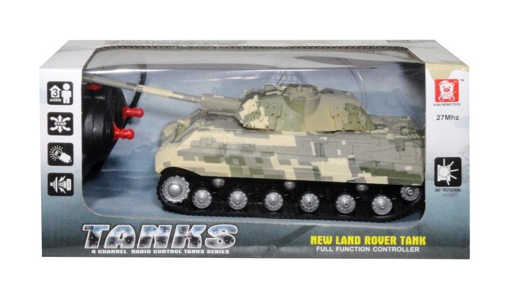 Plastikowy czołg dla dzieci. Świeci światełkiem, wydaje dźwięki oraz obraca działem o 360 stopni, porusza sie we wszystkich kierunkach. Produkt działa na baterie typu AA. Baterie nie znajdują się w zabawce. Produkt zapakowany w kartonowe opakowanie z przezroczystym okienkiem Zabawka przeznaczona dla dzieci od 3 lat. Podane wymiary stanowią wymiar opakowania.