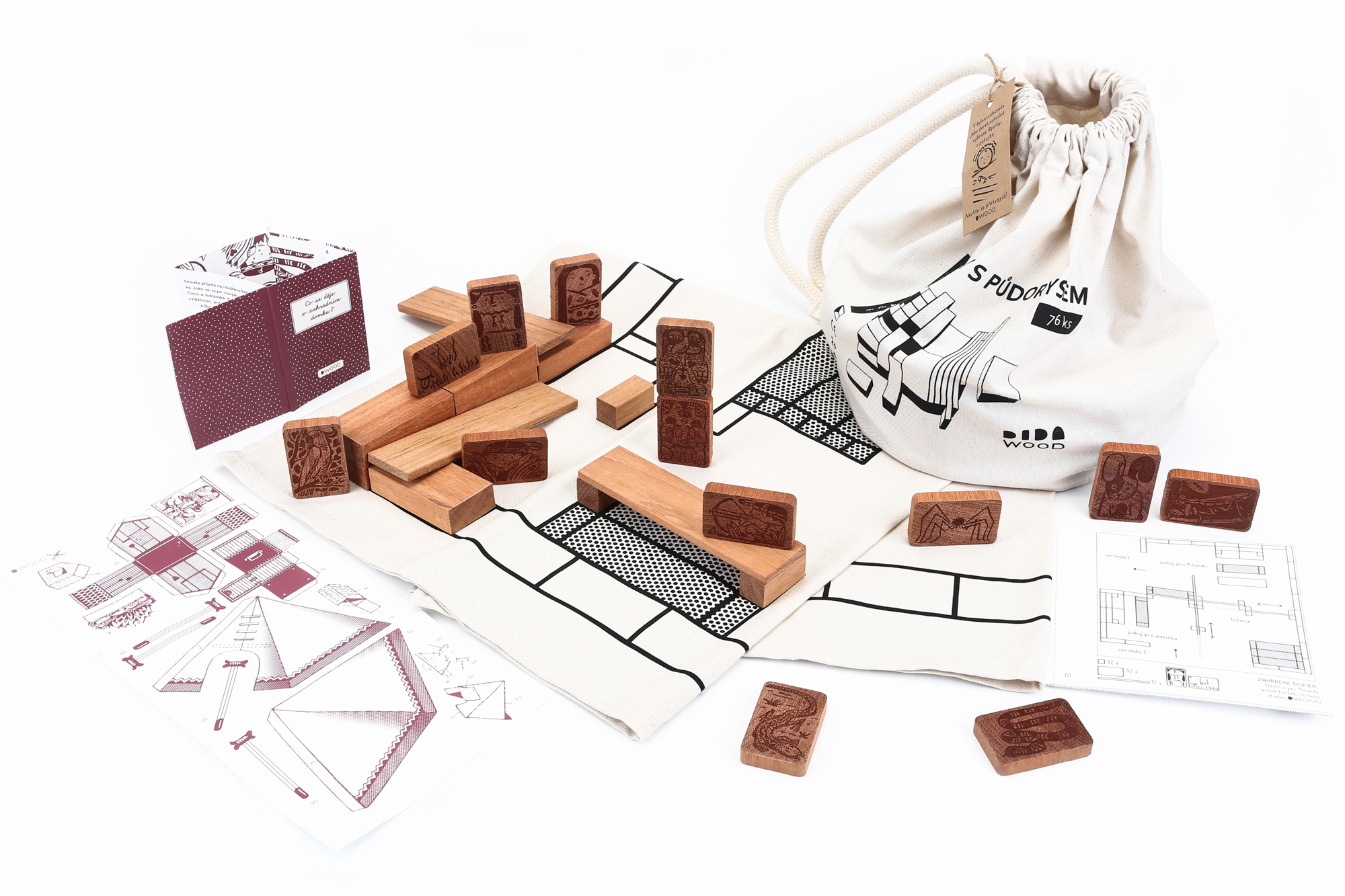 Materiál: tropické dřevo Jatoba. Návody i vystřihovánka z papíru.