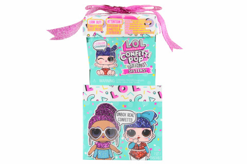 L.O.L. Surprise! Confetti Narozeninová panenka se sestřičkou. Balení obsahuje 1 panenku, 1 sestřičku, 1 - 2 módní doplňky, 1 - 2 páry bot, 1 lahvičku, 2 - 4 doplňky. Věk 3+ číst celé