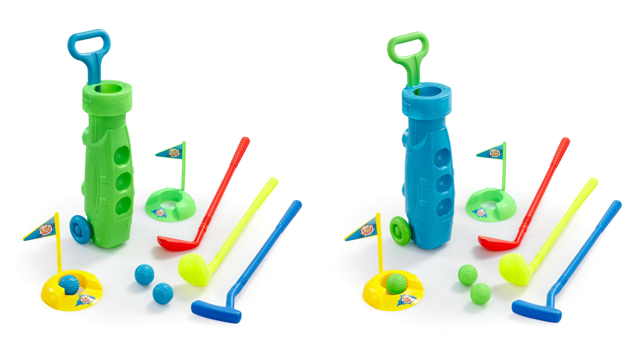 Skvělý golfový set se třemi pestrobarevnými holemi, třemi golfovými míčky, dvěma jamkami a vozíkem pro přepravu vašeho golfového vybavení. Golf si můžete zahrát kdekoliv jen budete chtít, stačí vše naložit do vozíku a vyrazit. Ve dvou barevných variantách. Baleno jako namíchaný assort. Rozměr...