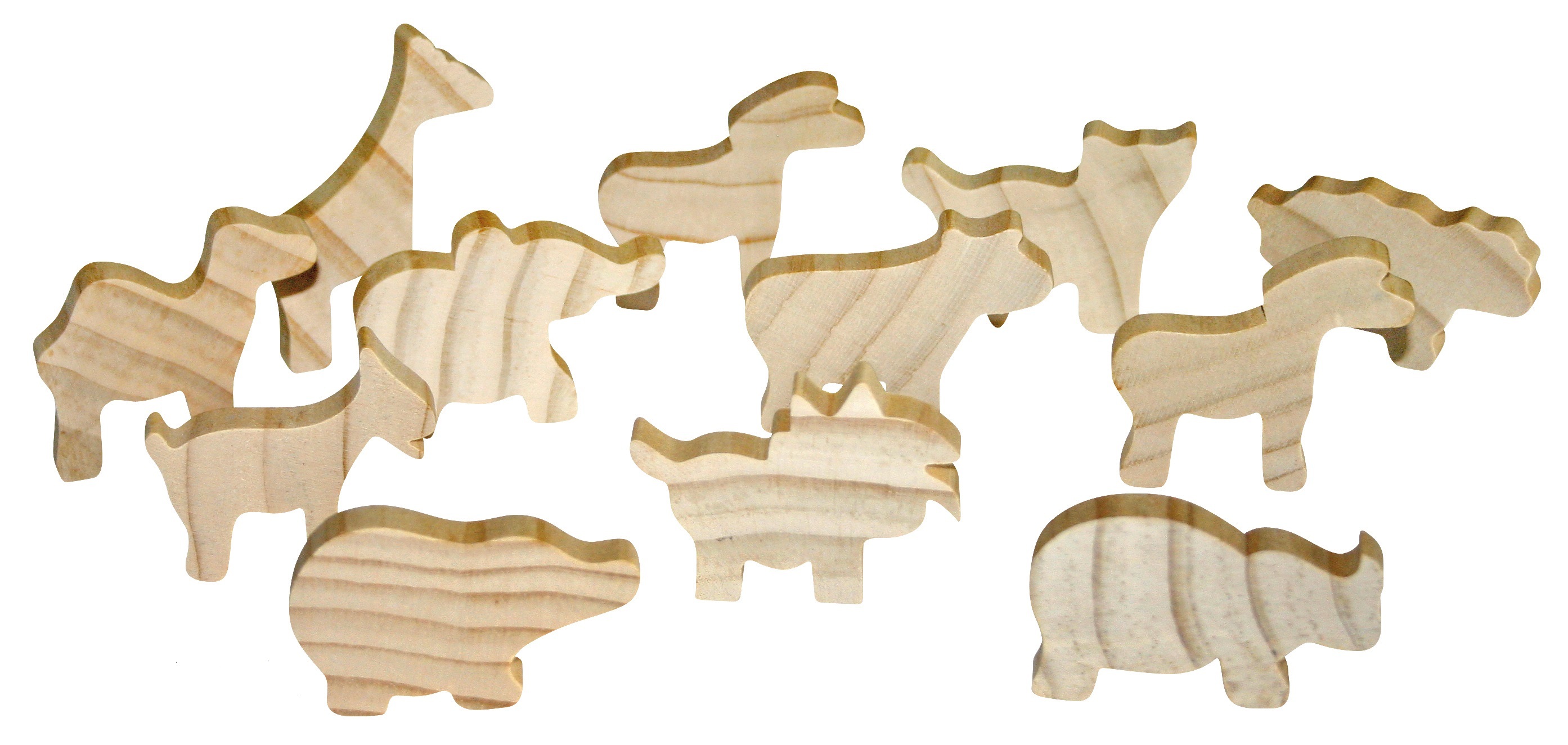 Set obsahuje: 12 kusů dřevěných zvířátek