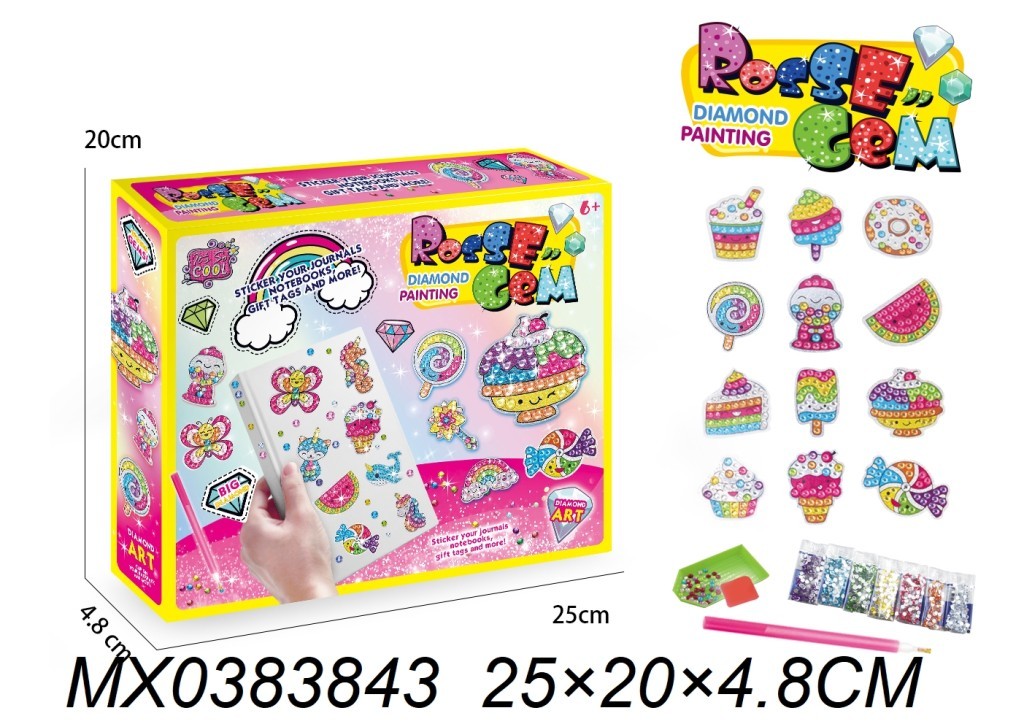 Ozdob si zápisník, deník, jmenovky na dárky a další…Diamantové tvoření: 1. Odloupnutím fólie, odkryješ na vybraném obrázku lepidlo 2. Ponoř pero do vosku 3. Nabírej drahokamy perem 4. Umísti drahokamy na plochu lepidla.