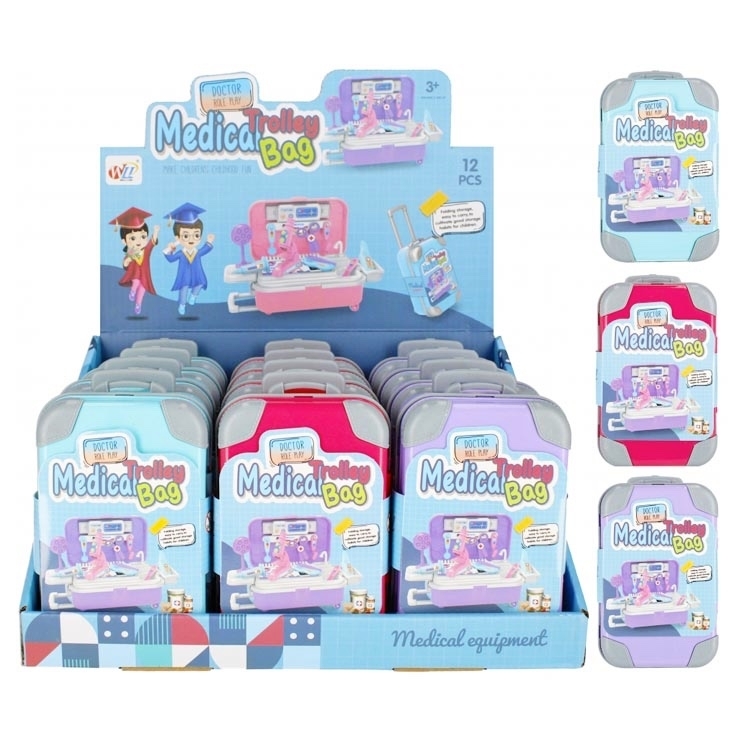 Souprava je zabalená v praktickém kufříku, dostupná ve třech barvách: modrá, růžová, fialová.Obsah sady: mikroskop, injekční stříkačka, nůžky, miska na nářadí, zrcadlo, nůž, lékařský nůž Rozměry výrobku (D x V x H) [cm]: 21x13x9, rozměr balení (D x V x D) [cm]: 30x15x27. Hračka je určena pro děti...