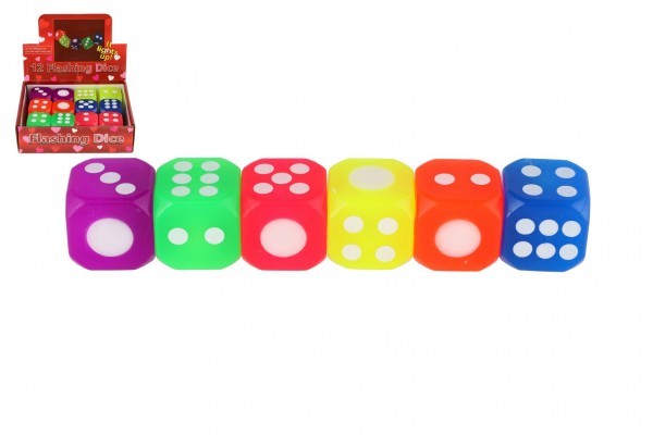 Kostka hrací svítící silikon 4x4cm 6 barev 12ks v boxu