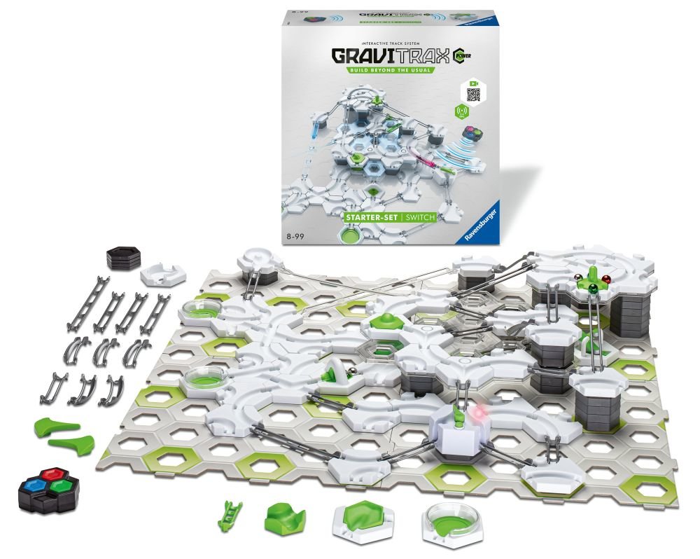Startovní sada s Výhybkou obsahuje 147 konstrukčních prvků pro tvorbu vlastních originálních drah v systému GraviTrax Power. Najdete zde základní stavební komponenty, ale i speciální elektronické ovládání, které dráhu oživí a umožní interaktivní spojení startu a cíle. Kuličky nejen sjíždějí, ale díky spouštěči a komunikujícím prvkům dráha automaticky vypouští nové kuličky a výhybka se sama přepíná, což přináší fascinující efekt nepřetržité jízdy.