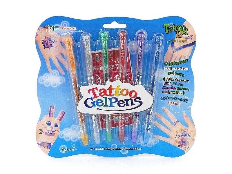 Długopisy kolorowe do tatuaży, 6 kolorów, brokatowe. číst celé
