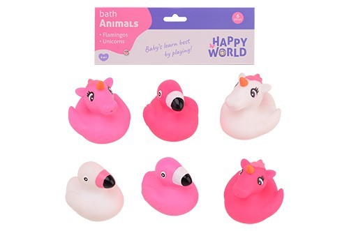 Tato sada obsahuje 6 veselých zvířátek - 3 plaměňáky a 3 jednorožce, která jsou vyrobena z kvalitního plastu. Jsou zábavným doplňkem do koupele, který povzbudí dětskou fantazii, podpoří hravost a pomůže dětem si vychutnat čas ve vaně. Zvířátka jsou navržena tak, aby byla bezpečná i pro ty nejmenší děti, což ocení každý rodič při každodenní koupeli.