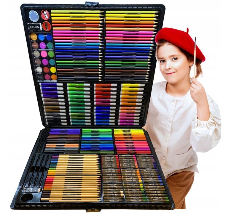 - Široké spektrum barevných nástrojů - 48 pastelek, 48 silných a 48 tenkých fixů, 60 olejových pastelů, 24 dřevěných tužek a 18 akvarelových barev.