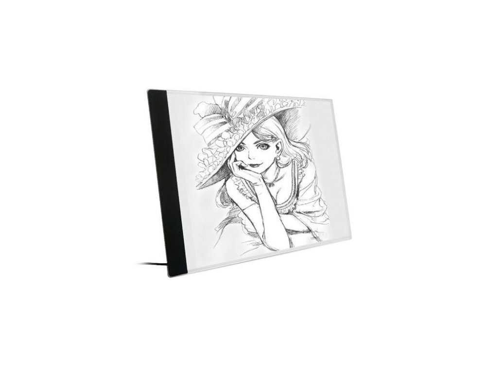 Lehká a tenká konstrukce z akrylu zajišťuje, že podložka není nijak nepraktická, snadno ji vezmete kamkoliv s sebou - doma, do školy i na výlet. Součástí balení je vše potřebné pro okamžité začátky: tužka, ořezávátko, dvě svorky na upevnění papíru, tři šablony s motivy a napájecí kabel s micro USB konektorem.