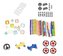 SOUČÁST BALENÍ:122 rovných tyčinek12 kulatých tyčinek75 kuliček magnetů96 geometrických tvarů6 oken2 auta4 kola11 pomocných tvarů