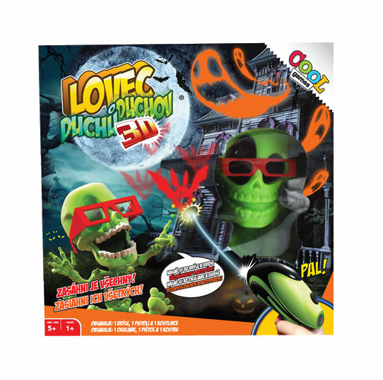 Užijte si spoustu zábavy s touto jedinečnou hrou pro celou rodinu. Oživte kostlivce, nastavte obtížnost hry, nabijte pistoli a buďte ve střehu. Kostlivec bude na zeď a strop promítat zelené duchy a červené netopýry. Zasáhnete-li ducha, získáte bod. Abyste zlikvidovali netopýra, musíte ho zasáhnout hned dvakrát. Tak získáte tři body. Pokud si nasadíte 3D brýle, uvidíte na stěně a stropě devět duchů nebo netopýrů. Hra má tři obtížnosti. Počet zásahů se zobrazuje na elektronickém displeji pistole. Po každých šesti ranách musíte nabít. Balení obsahuje pistoli, kostlivce, 3D brýle a návod. Kostlivec vyžaduje 4 AA baterie a pistole 3 AAA baterie (nejsou součástí balení).