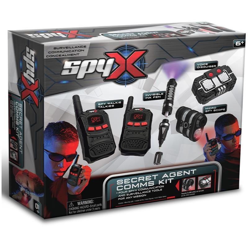 Komunikační sady tajných agentů: Vysílačky, Neviditelné inkoustové pero, Hlasový maskér, Mikroskopický dosah ,6+ Použijte baterie „AAA/LR03 1,5V (nejsou součástí balení) a baterie „AAA/LR43“ 1,5V (jsou součástí balení - pouze pro zkušební provoz).