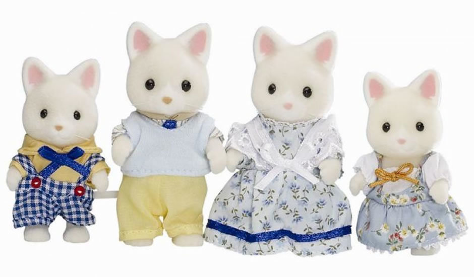 Rodina hedvábných koček. Taťka, mamka a 2 koťátka rodiny koček. Děti si mohou vymyslet vlastní příběh ze světa Sylvanian Family. Oblečení na postavičkách je možné svlékat a znovu oblékat. Obsahuje 4 figurky: tatínka, maminku, bratra a sestra o velikosti 6-8cm.