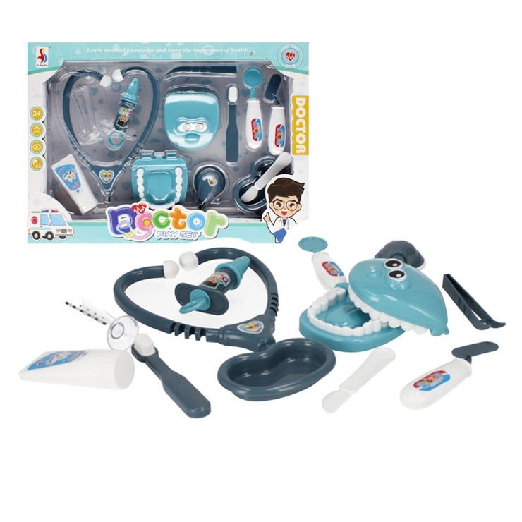 Set zubař, sada obsahuje čelist, zubní pastu, zubní kartáček, zubní zrcadlo, kleště, injekční stříkačku, lahvičku, stetoskop, nádobku na nářadí a 2x zubní nůž. Rozměry balení jsou 39x28x6cm. Výrobek je určen pro děti ve věku 3+. číst celé