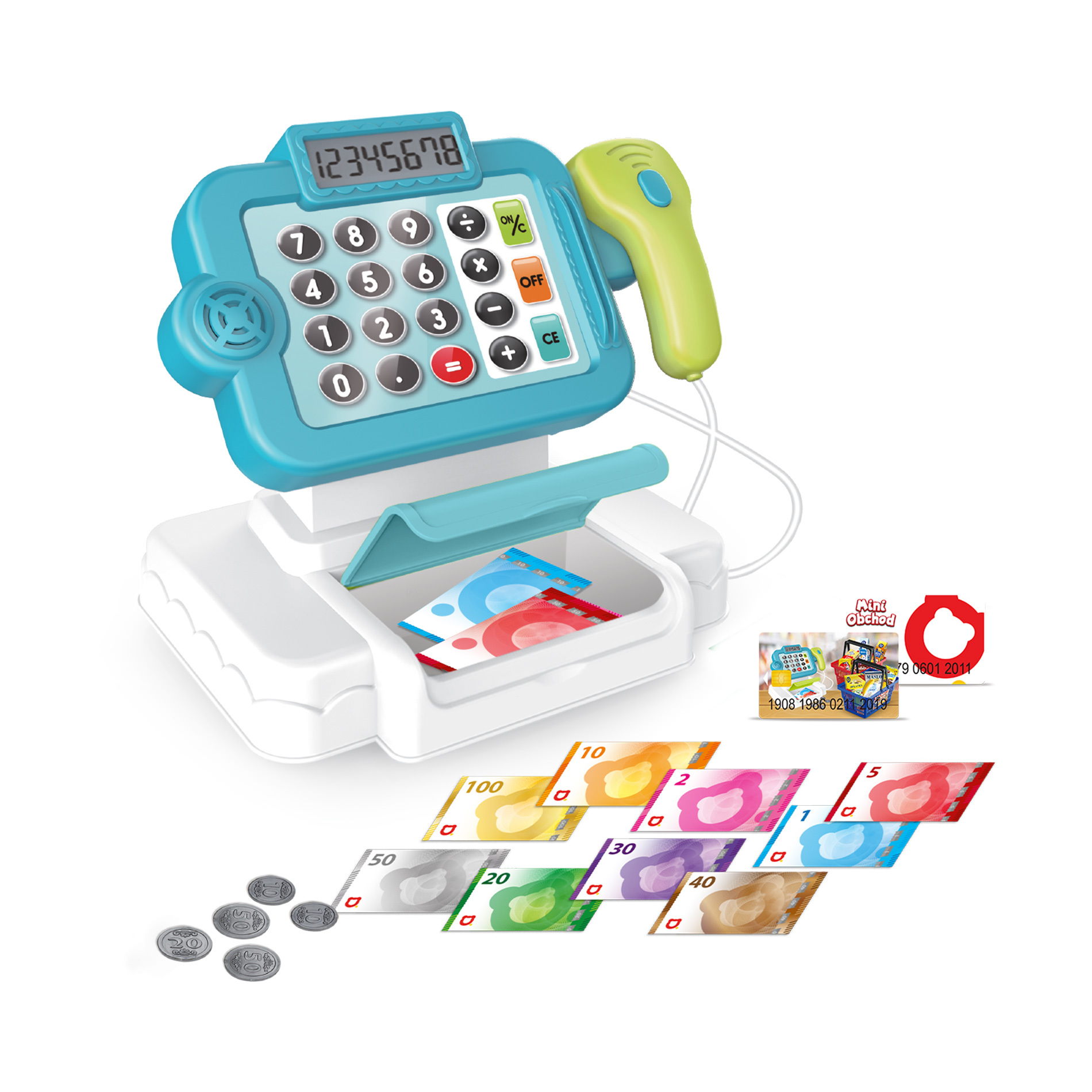 MINI OBCHOD - pokladna česká s učením jak nakupovat - modrá