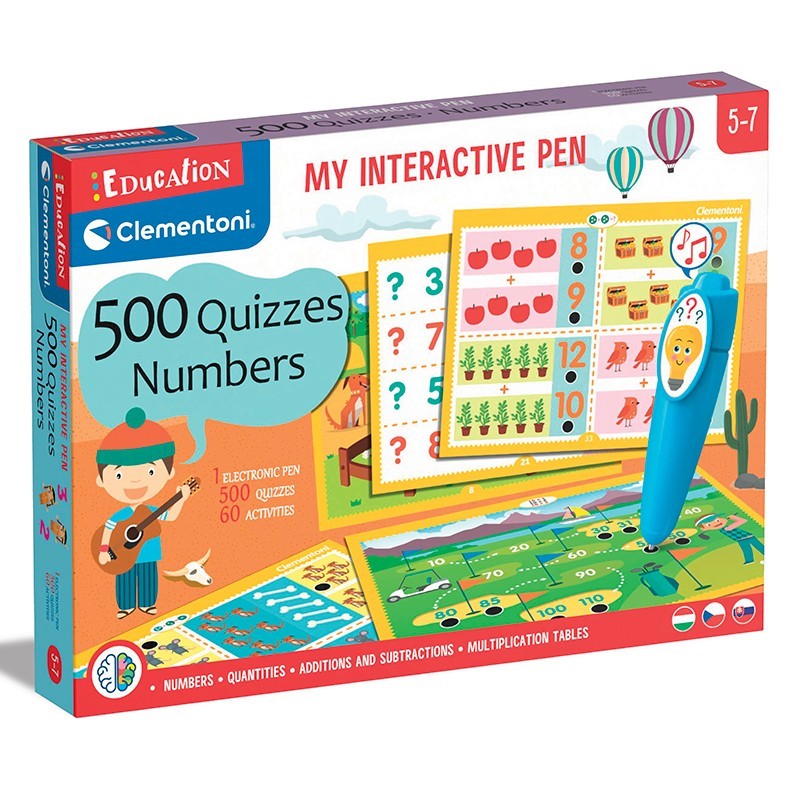 Unikátní mluvící elektronické pero umožňuje dětem učit se samostatně - ihned zjišťují, zda jejich odpovědi jsou správné. Hra obsahuje řadu vzdělávacích karet a více než 500 kvízů zaměřených na čísla a množství, což podporuje komplexní porozumění základům matematiky a logiky již v raném věku.