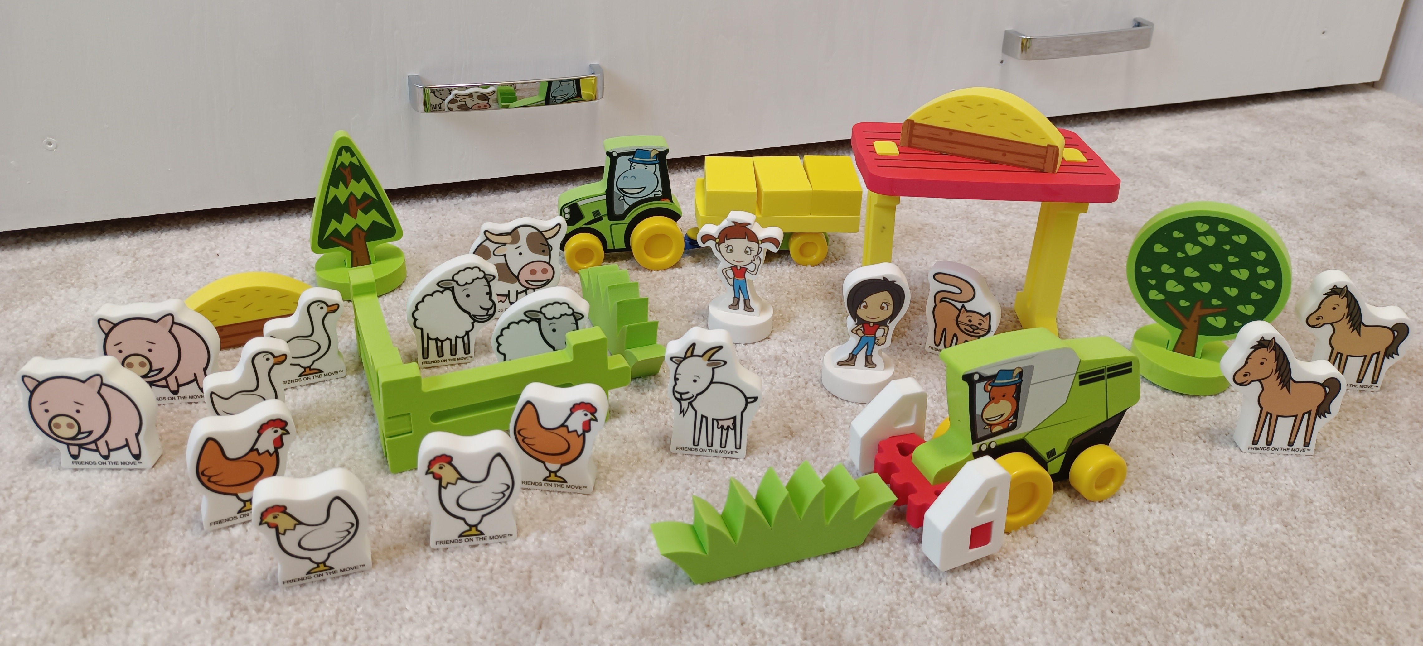 FOAMINIS Farma je pěnová stavebnice pro nejmenší, se kterou si mohou děti hrát a současně se seznamovat s životem na farmě i jednotlivými druhy zvířátek. FOAMINIS podporuje u dětí vnímání okolního světa a jeho porozumění hravou formou. Barevné dílky o velikosti cca 5 - 20 cm jsou kombinovatelné a mají široké využití. Dílky lze snadno sestavovat jednoduchým zasunutím do sebe. Vyrobeno v České republice.