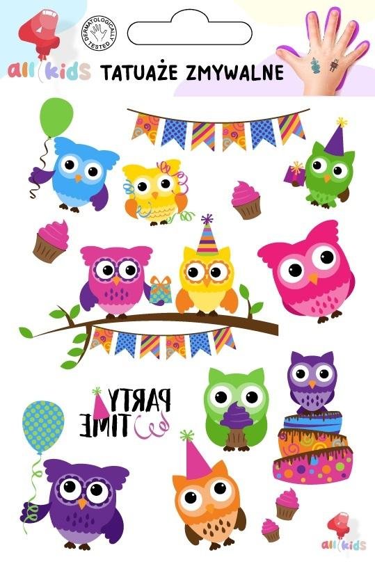 Tatuaże zmywalne dla dzieci Kolorowe sówki