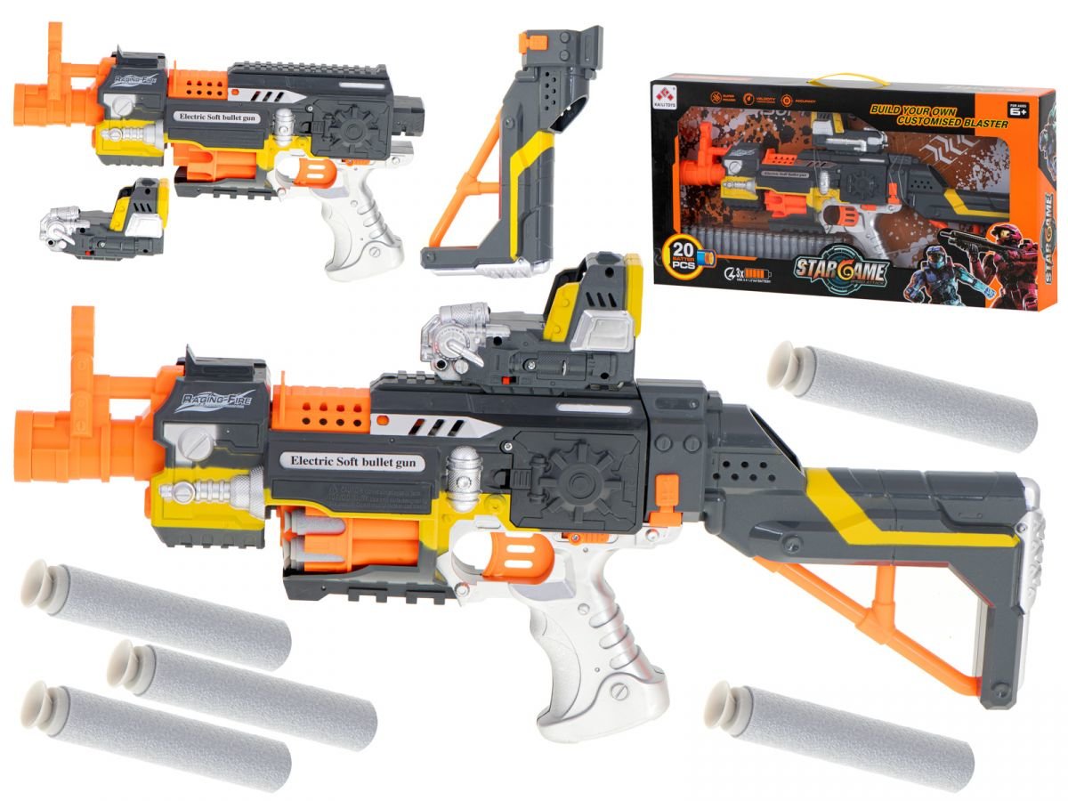 Samopal si oblíbí všichni chlapci. Samopal má vše, co je třeba pro úspěšný boj a následné vítězství. Samopal potěší všechny fanoušky počítačových her, kteří mohou přenést své bojové počítačové zkušenosti do skutečného světa. Barvy textur a reliéfů připomínají pušku z počítačových her a tak ji činí hračkou atraktivní pro děti všech věkových skupin.