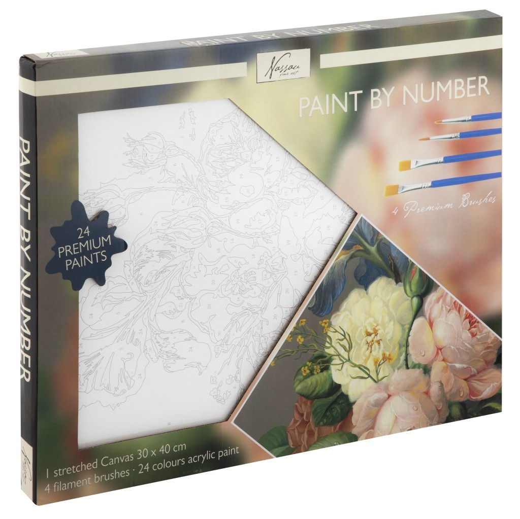 Malování podle čísel na na plátno Květiny 30×40 cm - namalujte si svůj obrázek pomocí čísel, které jsou již předtištěné. Součástí balení je 24 akrylových barev, plátno 30×40 cm s předtištěnými čísly, 2 ploché štetce a 2 kulaté štětce. číst celé