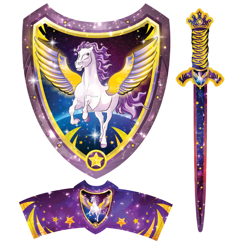Bezpečná a zábavná hra pro vaše děti, která rozvíjí fantazii a nabízí spoustu zábavy při každém dobrodružství. Tento pěnový meč a štít s motivem jednorožce jsou ideální pro malé rytíře i princezny.