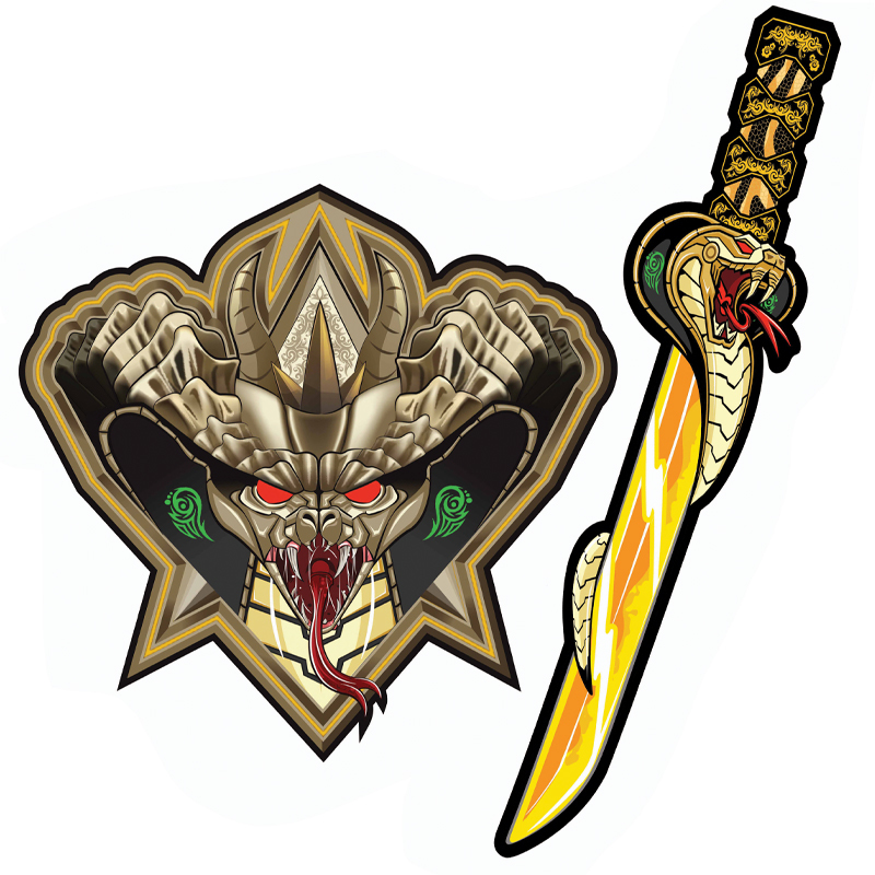 Dětský pěnový meč a štít s motivem kobry pro malého samuraje. Souprava je vyrobena z pěny a je velmi bezpečná. Vhodné jako doplněk ke karnevalovému kostýmu. - Věk: 3+