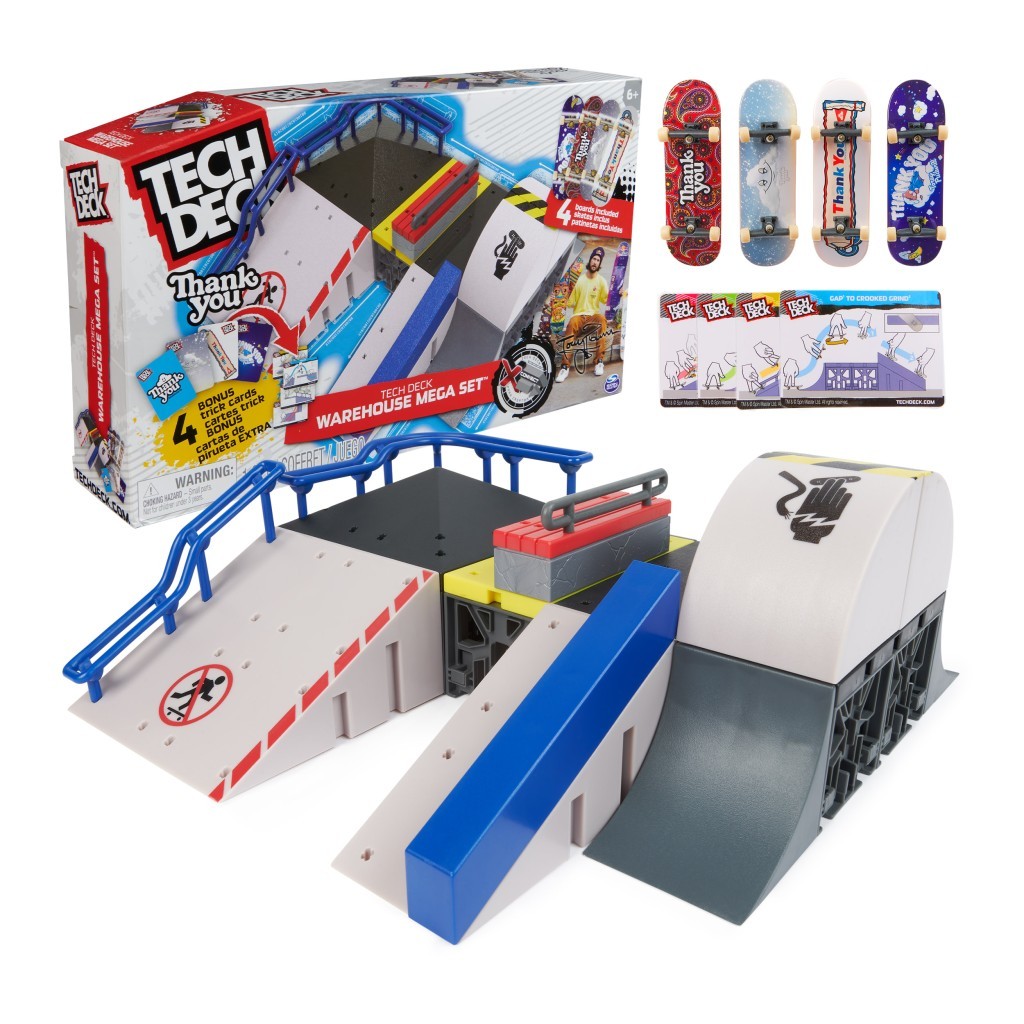 Postavte si svůj vysněný Tech Deck skatepark se sadou ramp Warehouse Mega X-Connect Park Creator. To zahrnuje vše, co potřebujete k vybudování úžasného vlastního parku s více než 16 dílky, se kterými si můžete hrát a stavět z nich. Vytvořte různé kombinace s pyramidami, rampami a raily, abyste se naučili nové triky a zdokonalili ty, které už umíte. Dropněte z pyramidy, zastavte se na rampě, grindujte na railu, nebo si to celé nastavte a přizpůsobte jakýmkoliv způsobem chcete. Skejtujte v parku se 4 exkluzivními profi fingerboardy Thank you Skateboards, součástí balení je ikonické prkno Toreyho Pudwilla, a rozšiřte tak svou sbírku mini skateboardů. Využijte kartiček s triky a otestujte tak své schopnosti s fingerboardy a soutěžte se svými přáteli. Zkombinujte park s dalšími rampami kompatibilními se systémem X-Connect a vytvořte si dokonalé překážky pro fingerboard, na kterých to můžete pořádně rozbalit. Použijte tuto herní sadu X-Connect Park Creator se sbírkou fingerboardů Tech Deck nebo Tech Deck BMX (každý se prodává zvlášť). K dispozici je spousta balíčků, figurek a hracích sad, které můžete sbírat! Užijte si jízdu, otočky a skoky na překážky s fingerboardy Tech Deck od skutečných skejterských společností! Tech Deck mini skateboardy pro prsty a rampové sady jsou ideálním dárkem pro dívky ve věku od 6 do 8 let, které milují malé a cool hračky anebo jako alternativa k autíčkům pro chlapce věku od 6 do 8 let. Začněte v malém, pokračujte ve velkém a posbírejte je všechny.
