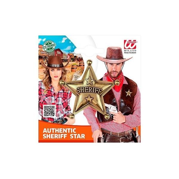 Šerifská hvězda s nápisem SHERIFF. Připínací. Velikost: 6,5 cm Materiál: 100% železo Věk: 3+ číst celé
