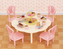 Duży stół jadalny idealnie nadaje się do zapełnienia dużą ilością słodkich smakołyków, a krzesła do jadalni i nakrycia dla maksymalnie czterech osób sprawiają, że jest to idealny zestaw imprezowy z okazji każdej wyjątkowej okazji. W zestawie tematyczne cappuccino i patera na ciasto wypełniona smacznymi przysmakami, zaproś swoich gości tym uroczym zestawem.