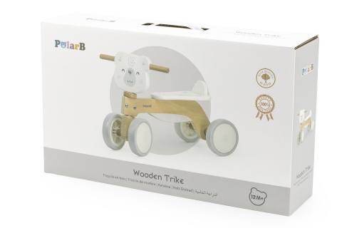 Dřevěné odrážedlo s krásným motivem ledního medvídka. Rozměry odrážedla 53x28,5x38 cm. Rozměry balení 46x27x11 cm. Věk 12m+