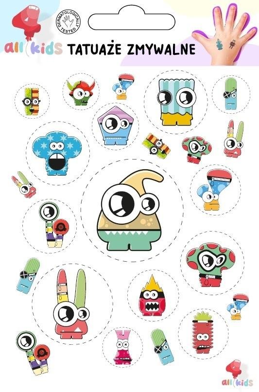 Tatuaże zmywalne dla dzieci Stwory Potwory