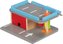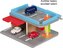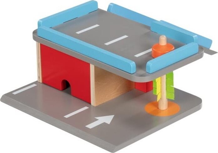 Parkoviště je vybavené dvěma patry - horní patro slouží k parkování, zatímco v přízemí je uzavřená garáž. K dispozici je také myčka na auta, kde mohou děti důkladně vyčistit svá autíčka, a čerpací stanice s nádrží pro doplnění paliva. Tato multifunkční garáž vybízí k příběhům plným dobrodružství a péče o vozidla.