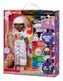 Jak s panenkou pracovat? Nasypte prášek do vody a vytvořte si barevnou lázeň, do které můžete namočit vlasy a oblečení panenky, nebo použít houbičku k vytváření originálních vzorů. Pomocí gumiček můžete oblečení zajímavě stahovat a vytvarovat tak jedinečné batikované oblečení.