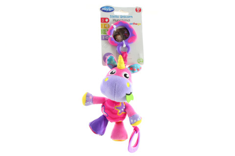Měkká textilní hračka je vyrobena z pestrobarevných vzorovaných materiálů, které působí příznivě v rozvoji dětského zraku. Rozmanité struktury materiálů stimulují dětský hmat. Děti si oblíbí zvířecí tlapičky, které šustí. Zvířátko uleví i při nepříjemném prořezávání prvních zoubků, na jedné z tlapičejk jsou umístěna kousátka. Hračka je opatřena závěsným klipem, kterým je možné hračku zavěsit na postýlku, kočárek nebo autosedačku. Rozměry hračky cca 11 x 17 x 6 cm. Věk 0+