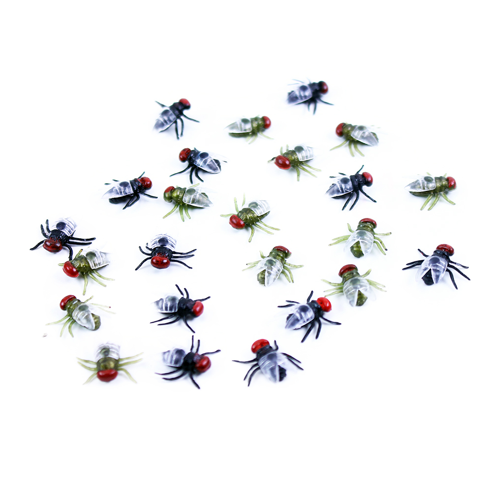 - Malé gumové mouchy o velikosti přibližně 1,5 cm.