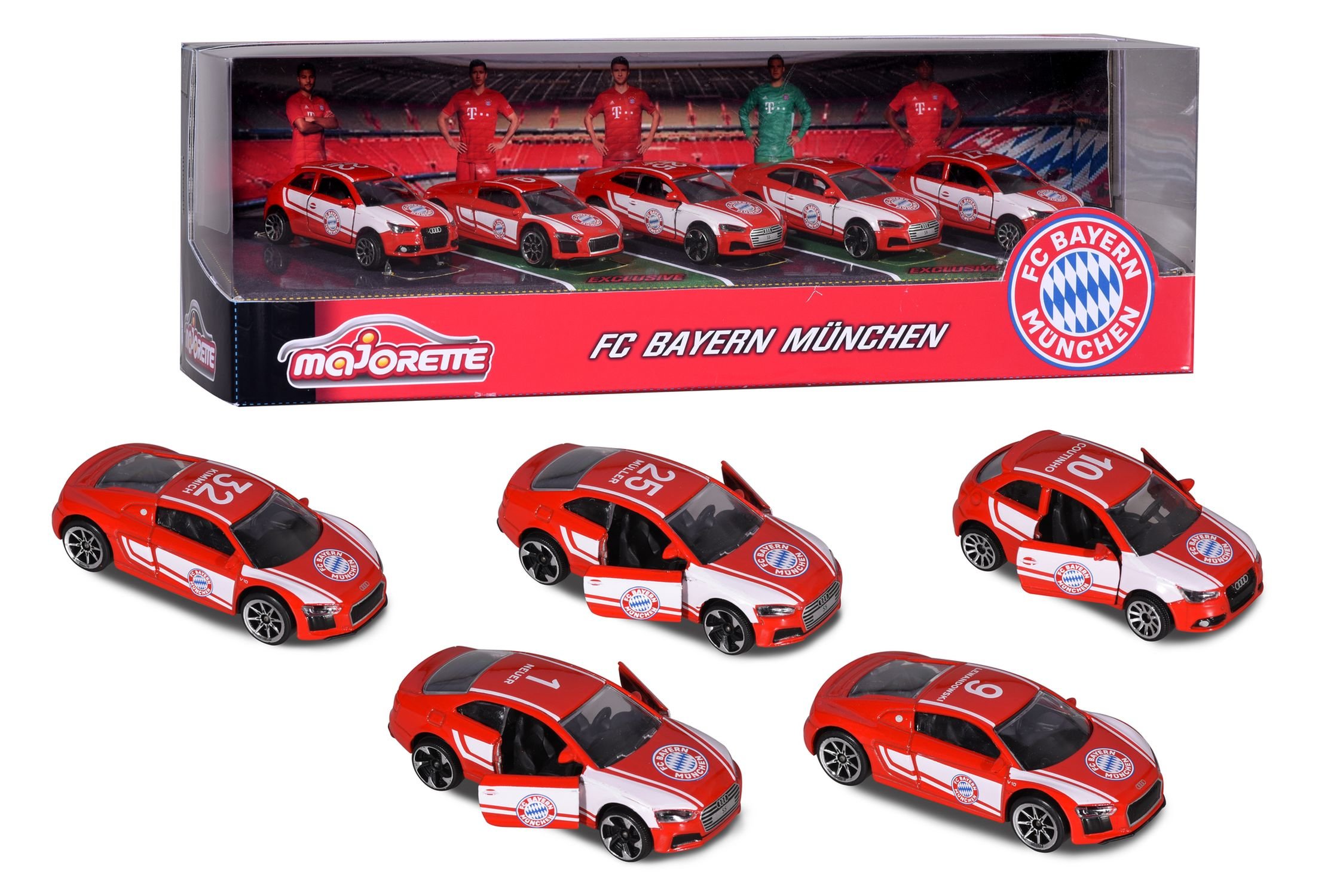 Dárková sada kovových autíček na volnoběh, se kterými jezdí aktuální fotbalisté Bayernu Mnichov. Autíčka mají čísla a jména 5 největších hvězd jednoho z nejpopulárnějších fotbalových klubů na světě. Délka 7,5 cm.