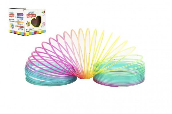 Spirála/pružina duhová plast průměr 7cm v krabičce 8x7x8cm
