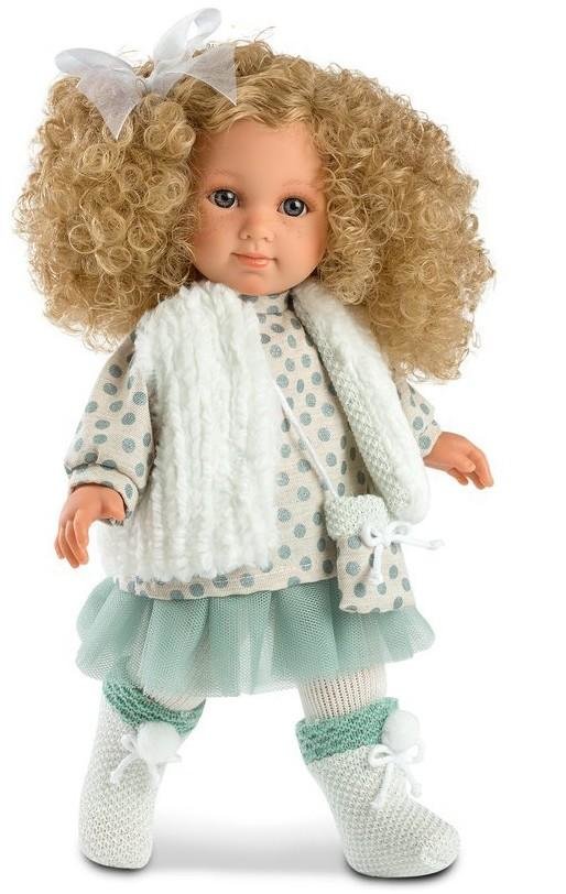 Panenka bez zvuku s měkkým látkovým tělem a s vlásky po celé hlavě, podobající se malé slečně. Velikost 35 cm. číst celé