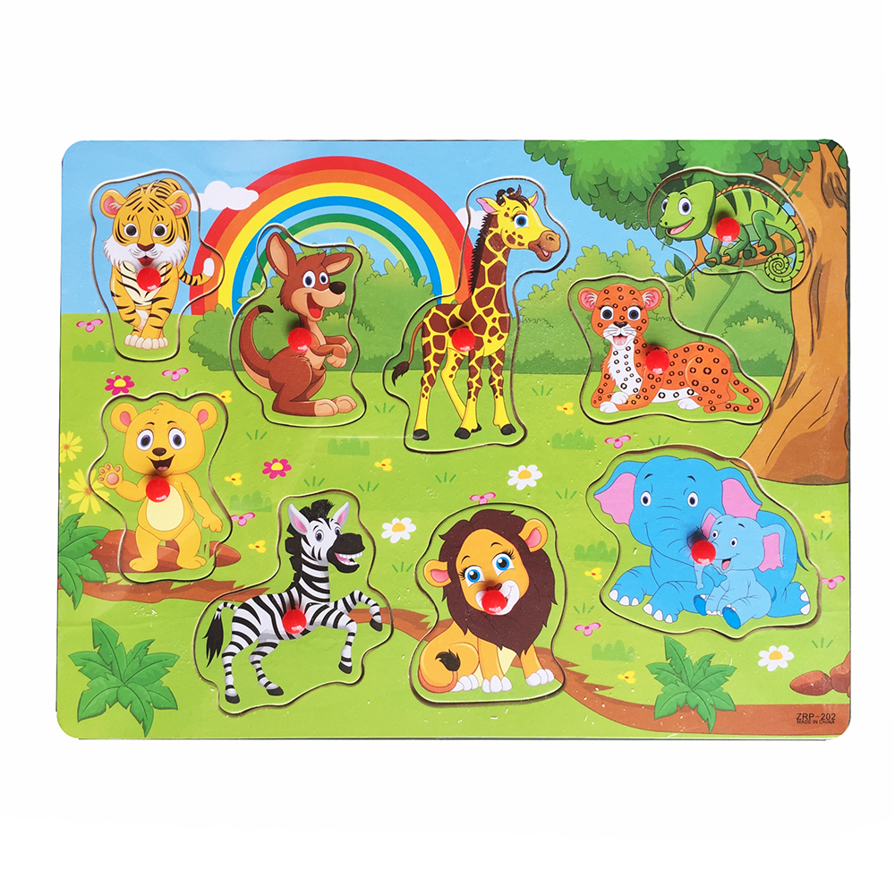 Dřevěná vkládačka s motivem roztomilých exotických zvířátek pro holky a kluky. Vkládačka je vyrobena z kvalitního dřeva. Obsahuje 9 dílků s praktickými úchyty.