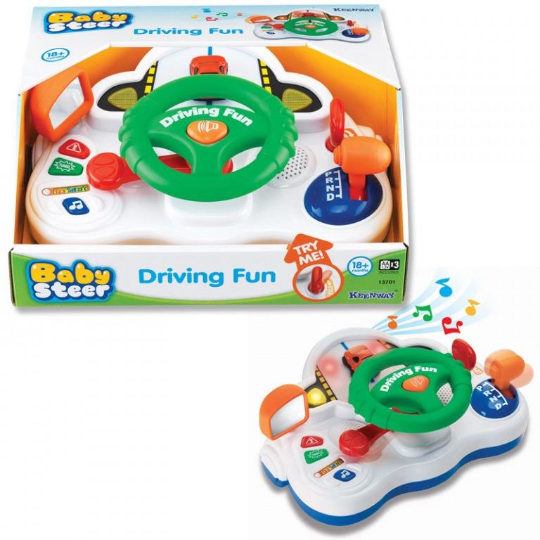 Funkční volant, klakson, řadící páka i blinkry. Auto vydává zvukové a světelné efekty a simuluje tak parádní jízdu v autě. Doporučený věk 18 m+ Rozměr: 16×32×25 cm Baterie: 3× AA, jsou součástí