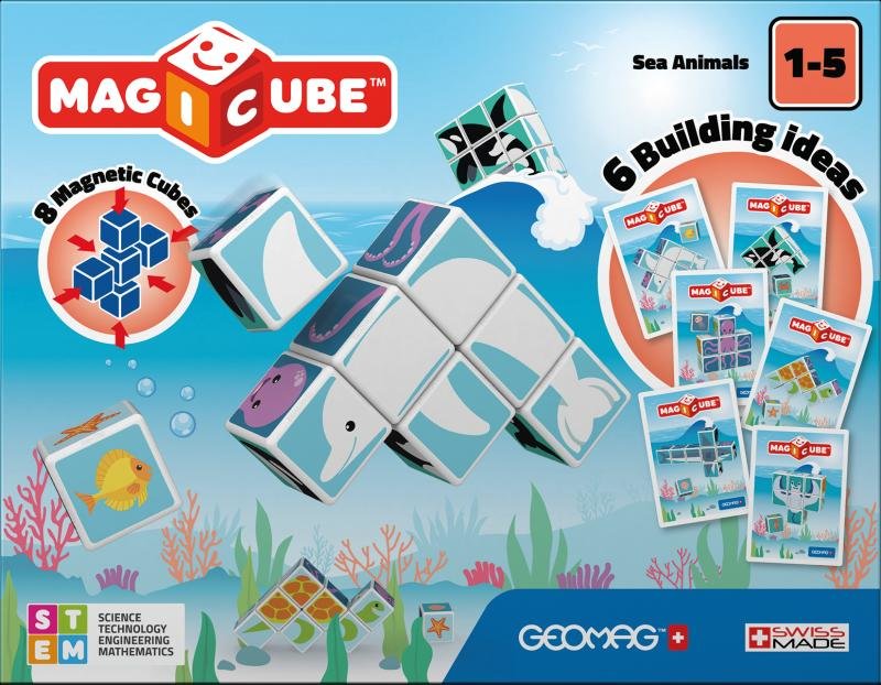 Kouzelné magnetické kostičky s motivem mořských zvířátek krásně vyzdobí každý dětský pokoj. Kostky, s pohyblivými magnety uvnitř, se přitahují ze všech stran a umožní tak vytvořit netradiční stavby. Balení obsahuje 8 magnetických kostek a 3 oboustranné kartičky s příklady staveb. Určeno pro...
