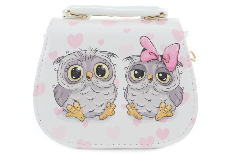 Bílá kabelka s motivem soviček. Rozměry kabelky cca 16,5 x 15 x 7 cm. Věk 3+ číst celé