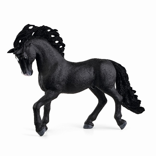 Hřebec andaluského koně ze Schleich ® Horse Club je hrdý černý kůň s elegantním klenutým krkem, ušlechtilým tvarem hlavy, dlouhou splývavou hřívou a bujným ocasem. Koně tohoto plemene jsou často mylně považováni za andaluské a naopak. To není žádným překvapením, protože v Andalusanech jsou samostatnou chovnou linií. Chovné knihy se vedou podle pevných pravidel, aby se odlišily od ostatních koní. Figurky Schleich jsou mimořádně detailní, láskyplně malované a umožňují dětem hrát si a zároveň se učit. Rozměr