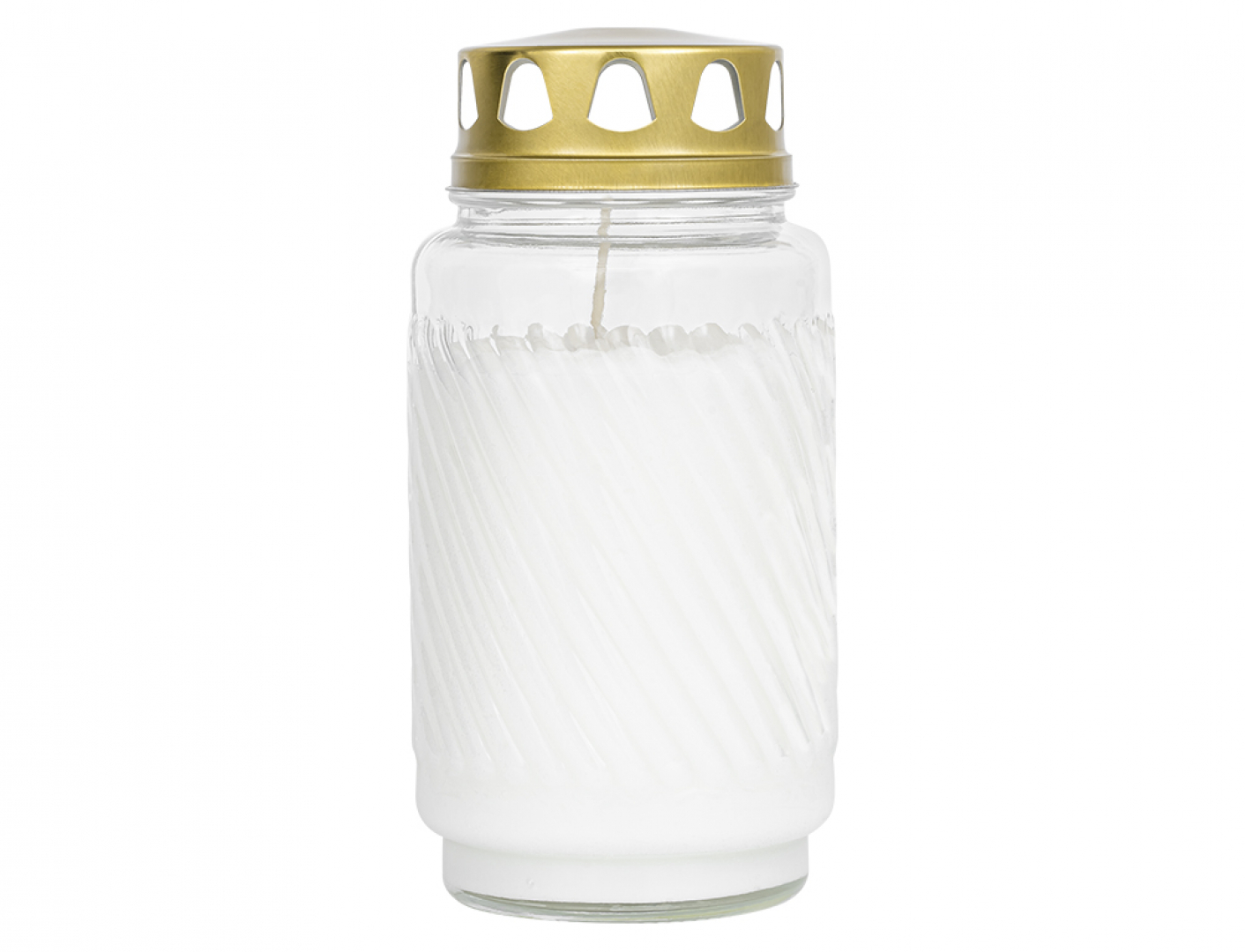 Lampička hřbitovní skleněná RIBBED d9x17cm, kovové víčko