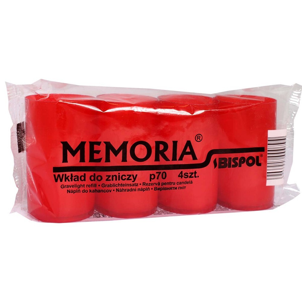 Tato výměnná náplň hřbitovní svíčky je balena po čtyřech kusech, což vám zajistí dostatek zásob pro pravidelné uctění památky vašich blízkých. Elegantní červená barva dodává svíčce tradiční a zároveň výrazný vzhled, který snadno zaujme a připomíná důležitost vzpomínek a pohledu na věčnost.