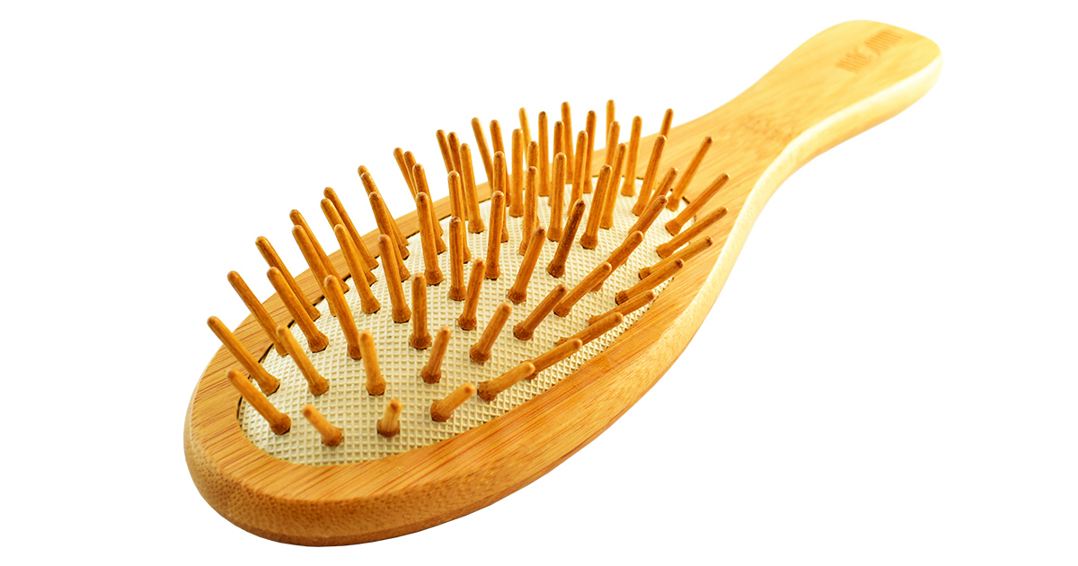 - Gumová podložka s bambusovými trny šetrně rozčesává vlasy bez lámání