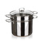 Tento kvalitní nerezový hrnec o objemu 5 litrů disponuje vnitřním nerezovým hrncem s otvory, který plní funkci cedníku nebo pařáku. Díky tomu lze těstoviny snadno a bezpečně scedit bez nutnosti používat další nádobí. Hrnec je doplněn praktickou skleněnou poklicí, která vám umožní kontrolovat průběh vaření bez ztráty tepla a vlhkosti.