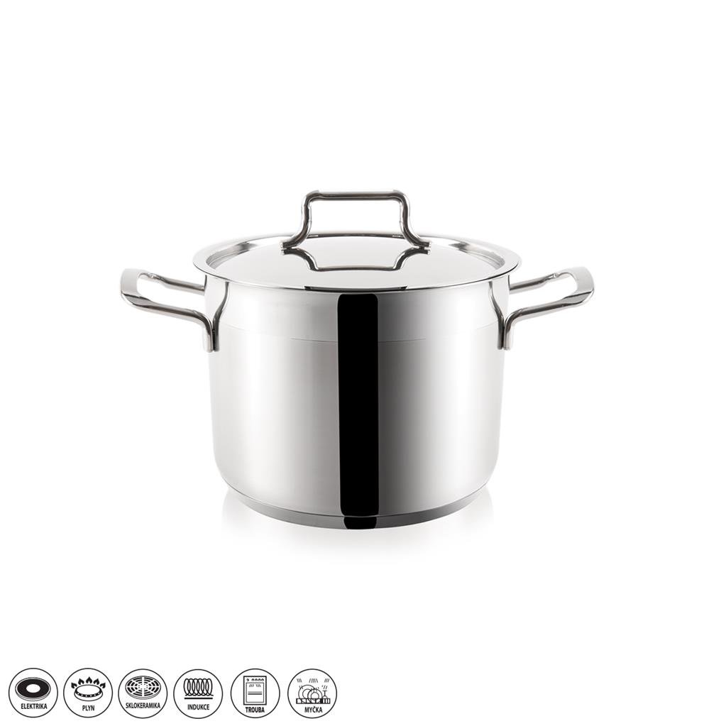 Hrnec s nerezovou poklicí s otvory pro únik páry - objem 4,6 l, pr. 20 cm, v. 15 cm. Nerezové hrnce představují díky používaným technologiím a kvalitním materiálům výrobek vhodný pro každou moderní domácnost a jsou ideální cestou ke zdravé výživě, dietní, ekonomické a estetické přípravě pokrmů. Nabízené nádoby jsou vyrobeny z vysoce kvalitní nerezové oceli třídy 304. Naakumulovaná energie předává teplo dále do nádoby - tepelný zdroj vypínáme v předstihu.Nádobí lze používat na všechny typy spotřebičů i do trouby. Vhodné i do myčky nádobí. - fritování, napařování, vaření s minimálním množstvím tuku, bez ztráty vitamínů a minerálů obsažených v potravinách - nádobí představuje dokonale hygienické prostředí pro vaření a uchování potravin- zachování přirozené chuti a hmotnosti upravovaných potravin- vnější a vnitřní povrch nádob je vysoce leštěný, takže brání usazování nečistot a zaručuje dokonalou údržbu- sendvičové dno s termoakumulačními vlastnostmi zaručuje rychlé a ekonomické vaření s výraznou úsporou energie- široká nabídka kastrolů, hrnců a rendlíku Vám umožňuje vytvořit si soupravu nádobí podle vlastních představ.