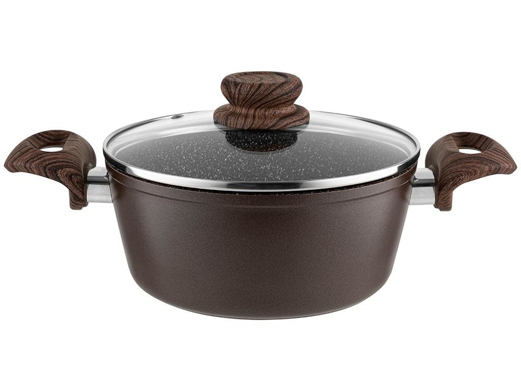 Materiál: hliník, rozměr: 20 cm, objem: 2,5 l, tloušťka stěny 3,5 mm, skleněné víko, vnitřní povlak: hnědý, druh kamene - mramor, melír, vnější povlak: hnědý mat. Soft touch rukojeť (imitace dřeva) Vhodné pro všechny typy sporáků včetně indukčních - doporučeno ruční mytí. číst celé
