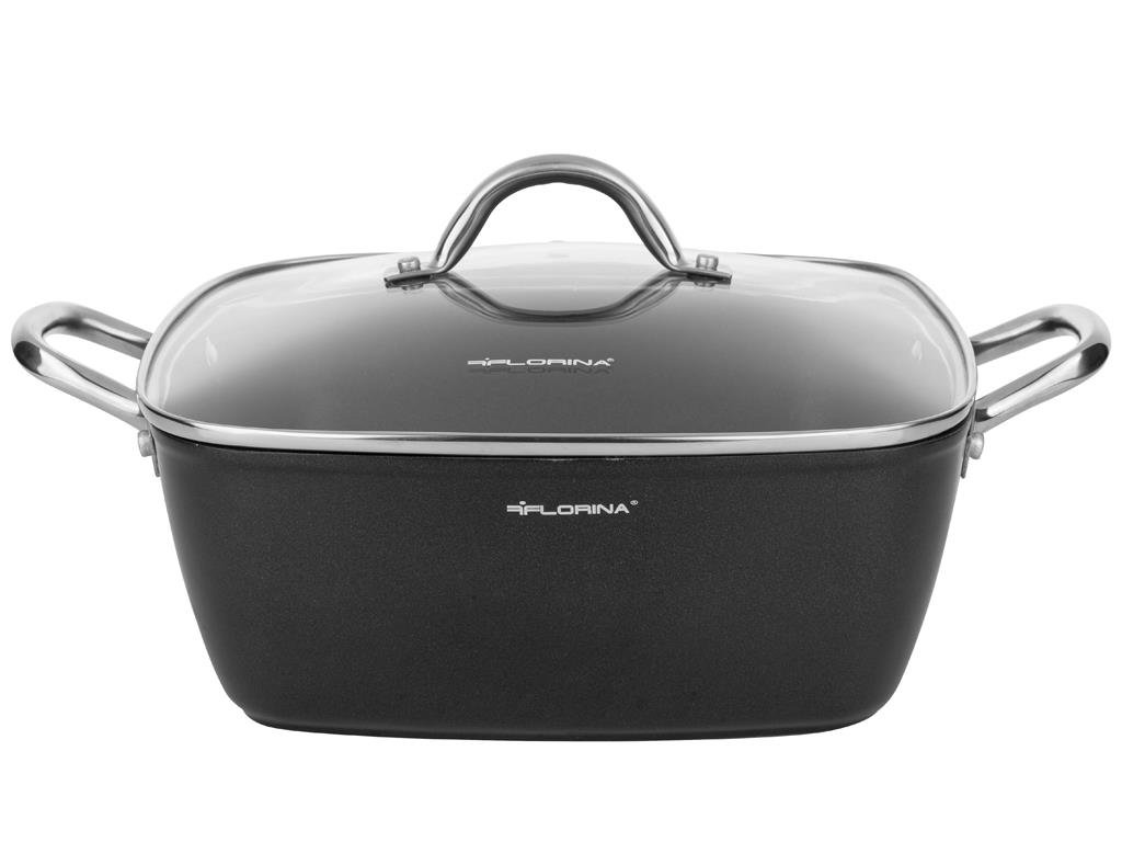 KOVANÝ ALUMINIOVÝ HRNEC 28 CM SE SKLENĚNOU POKLIČKOU, TLOUŠŤKA 3,0 MM, OBJEM: 6,1 L, INDUKCE, RUKOJEŤ Z NEREZOVÉ OCELI, NEPŘILNAVÝ POVRCH ČERNÉ BARVY SE STŘÍBRNÝMI ČÁSTEČKAMI, VNĚJŠÍ POVRCH ČERNÝ MAT ODOLNÝ NA VYSOKÉ TEPLOTY